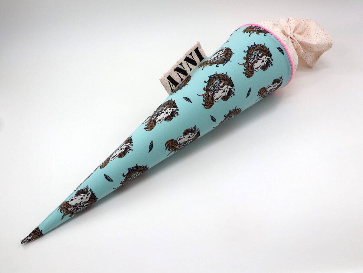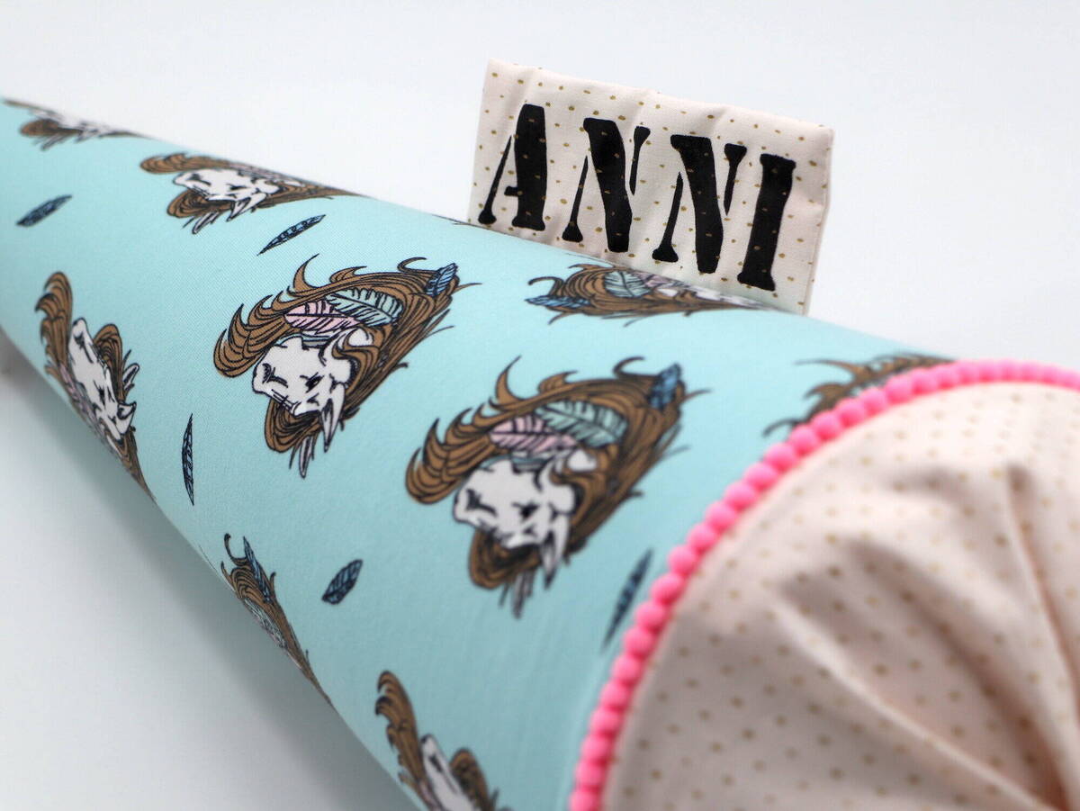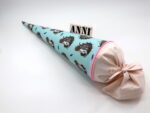 Die Schultüte wird aus hochwertigen Designerstoffen genäht und auf Wunsch mit dem Namen des Schulkindes individualisiert. Die Tüte ist 70cm hoch und wird mit einem entsprechenden Papprohling geliefert. Um eine bleibende Erinnerung an den Einschulungstag zu haben, kann nach der Einschulung der Papprohling aus der Schultüte entfernt werden und und mit dem Inlet als Kuschelkissen Einzug in das Kinderzimmer halten.