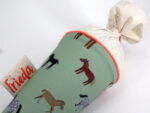 Wir nähen die passende Zeugnismappe in dem Stoff des Tütenkörpers. Hier gibt es nähere Details.