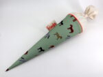 Die Schultüte wird aus hochwertigen Designerstoffen genäht und auf Wunsch mit dem Namen des Schulkindes individualisiert. Die Tüte ist 70cm hoch und wird mit einem entsprechenden Papprohling geliefert. Um eine bleibende Erinnerung an den Einschulungstag zu haben, kann nach der Einschulung der Papprohling aus der Schultüte entfernt werden und und mit dem Inlet als Kuschelkissen Einzug in das Kinderzimmer halten.