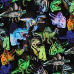 Dieser Sweat-Stoff in Schwarz mit witzigem Dinosaurier-Motiv ist perfekt für Kinderkleidung, die Spaß macht. Die kuschelige Rückseite und der weiche Griff machen ihn ideal für Hoodies, Jogginghosen, Jacken und warme Kinderoutfits. Ein echter Eyecatcher für kleine Dino-Fans!