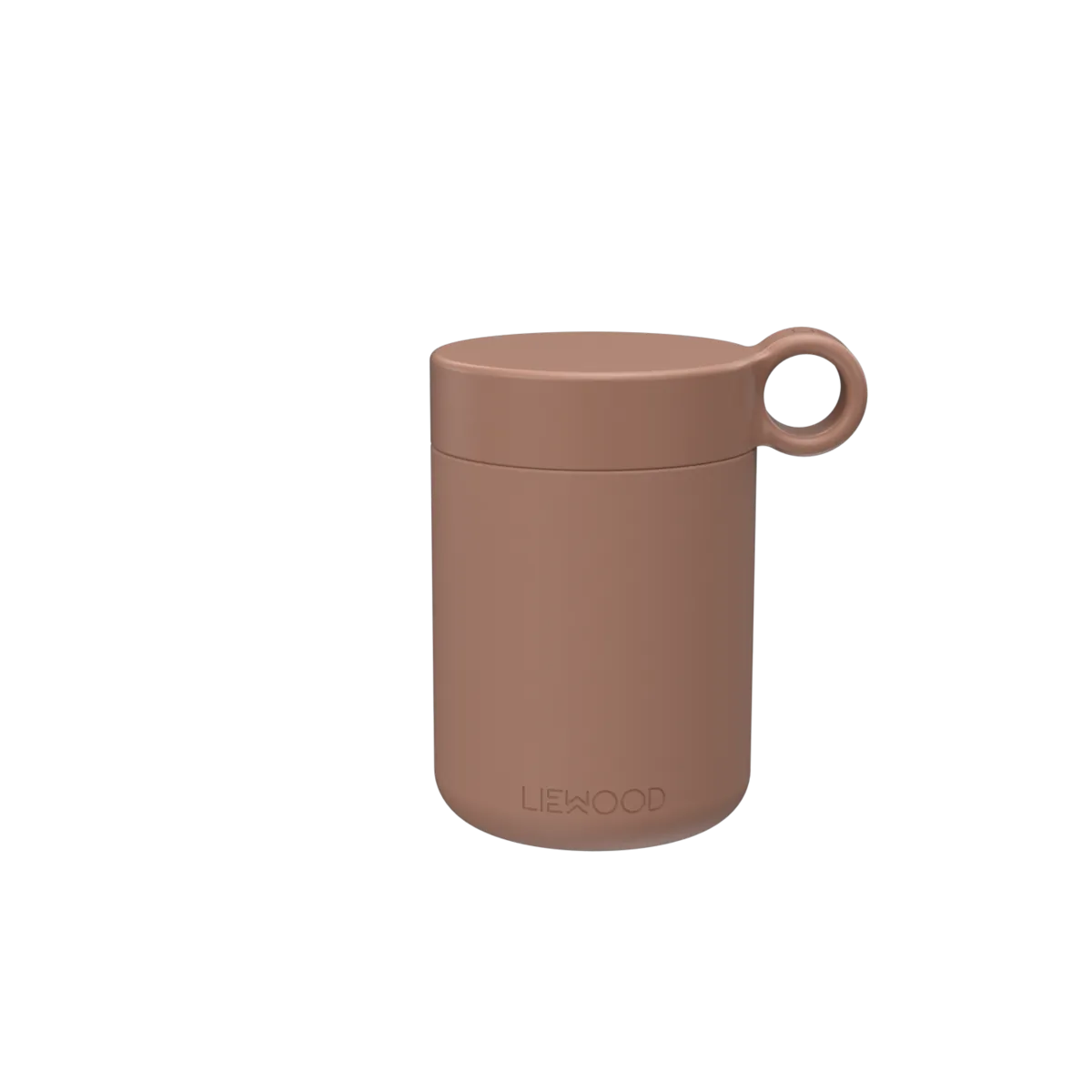 Mit seinen doppelten Wänden aus Edelstahl ist das Gefäß ideal für die Mitnahme von Brei oder Snacks unterwegs. Der auslaufsichere Stahldeckel mit Karabiner ermöglicht die Befestigung am Kinderwagen oder an der Tasche.