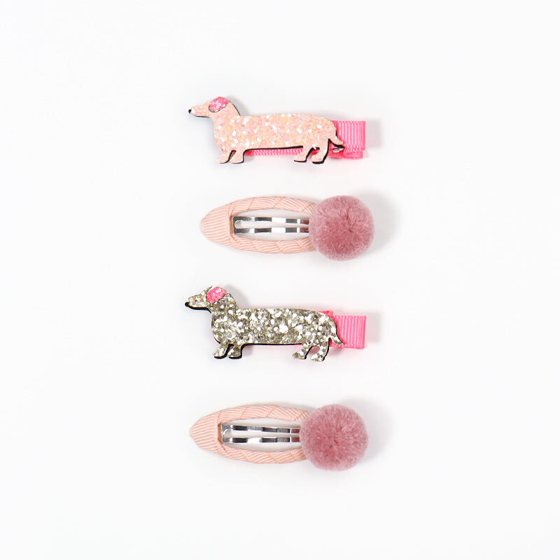 Endlich gibt es die Glitzerdackel für den perfekten Auftritt. Die Haarklammern vom Label vonrike sehen nicht nur süss aus, sondern sitzen auch toll in feinem Haar!