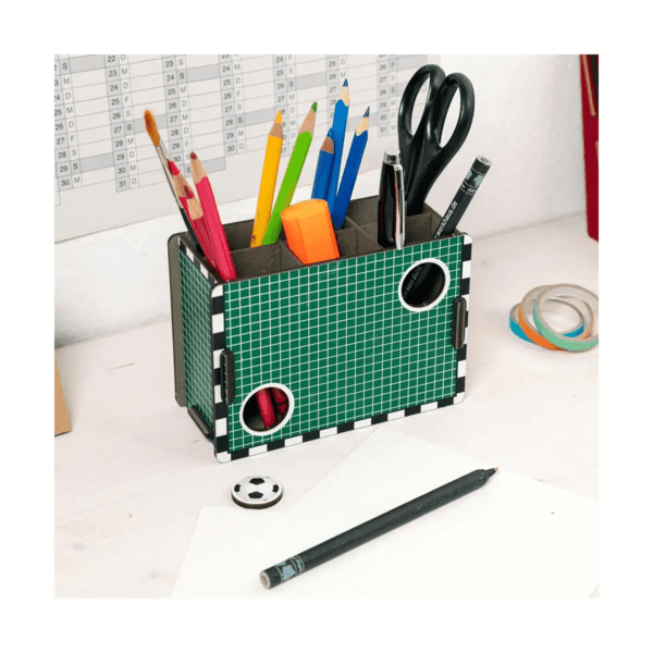 Ob am Arbeitsplatz oder im Kinderzimmer: Diese Mini-Torwand bringt sportlichen Spaß und ist das ideale Schreibtisch-Accessoire für Fußballfans – ganz gleich, ob groß oder klein. Und hast du so richtig viele Teile ergänzt du deine Torwand durch die Stiftebox ‚Fußball‘ – ein starkes Duo gegen Unordnung!