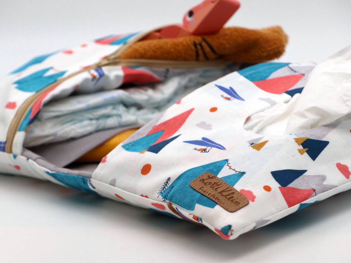 Sobald sich Nachwuchs ankündigt, stellt sich die Frage der notwendigen Erstausstattung. Die Windeltasche von LottiKlein ist die perfekte Alternative zu großen sperrigen Wickeltaschen und dadurch das perfekte Geschenk zur Geburt oder zur Taufe. Die Tasche bietet Platz für Windeln, Feuchttücher, Nuckel, U-Heft, Wickelunterlagen, das Lieblingsspielzeug des Babys und vieles mehr. Außerdem kannst Du die Wickeltasche blitzschnell mit dem angebrachten Gummiband verschließen. Du kannst die Windeltasche nach Belieben individualisieren lassen. Hierzu wird der Name des Kindes mit Holzwürfeln auf das Verschlussband gezogen.