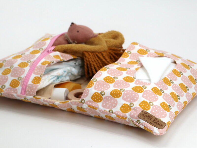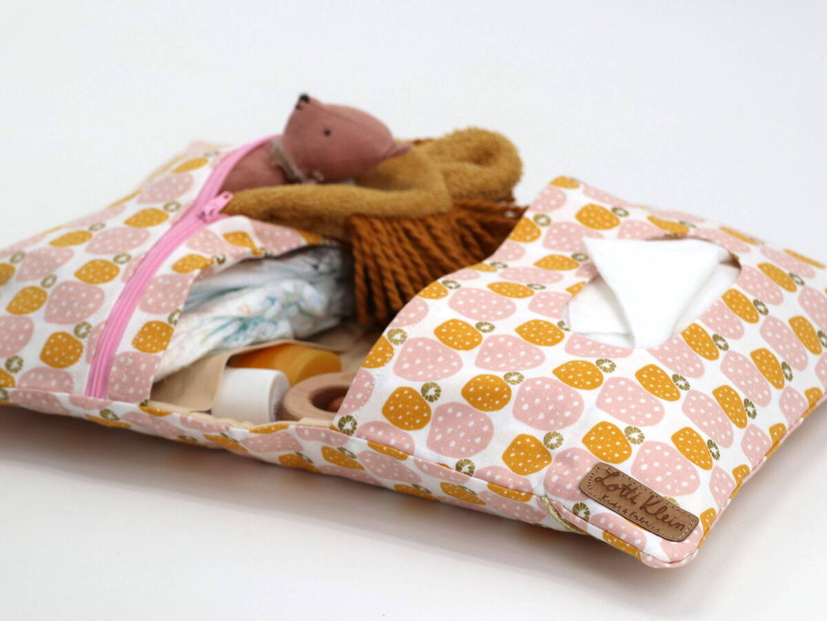 Sobald sich Nachwuchs ankündigt, stellt sich die Frage der notwendigen Erstausstattung. Die Windeltasche von LottiKlein ist die perfekte Alternative zu großen sperrigen Wickeltaschen und dadurch das perfekte Geschenk zur Geburt oder zur Taufe. Die Tasche bietet Platz für Windeln, Feuchttücher, Nuckel, U-Heft, Wickelunterlagen, das Lieblingsspielzeug des Babys und vieles mehr. Außerdem kannst Du die Wickeltasche blitzschnell mit dem angebrachten Gummiband verschließen. Du kannst die Windeltasche nach Belieben individualisieren lassen. Hierzu wird der Name des Kindes mit Holzwürfeln auf das Verschlussband gezogen.