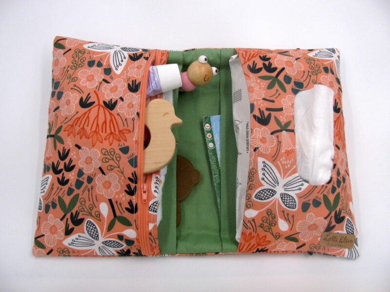 Unsere Windeltasche mit sieben Fächern für Alles was man im Alltag mit dem Baby braucht. Sie ist 26x28cm (aufgeklappt) groß.