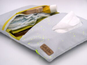 Sobald sich Nachwuchs ankündigt, stellt sich die Frage der notwendigen Erstausstattung. Die Windeltasche von LottiKlein ist die perfekte Alternative zu großen sperrigen Wickeltaschen und dadurch das perfekte Geschenk zur Geburt oder zur Taufe. Die Tasche bietet Platz für Windeln, Feuchttücher, Nuckel, U-Heft, Wickelunterlagen, das Lieblingsspielzeug des Babys und vieles mehr. Außerdem kannst Du die Wickeltasche blitzschnell mit dem angebrachten Gummiband verschließen. Du kannst die Windeltasche nach Belieben individualisieren lassen. Hierzu wird der Name des Kindes mit Holzwürfeln auf das Verschlussband gezogen.