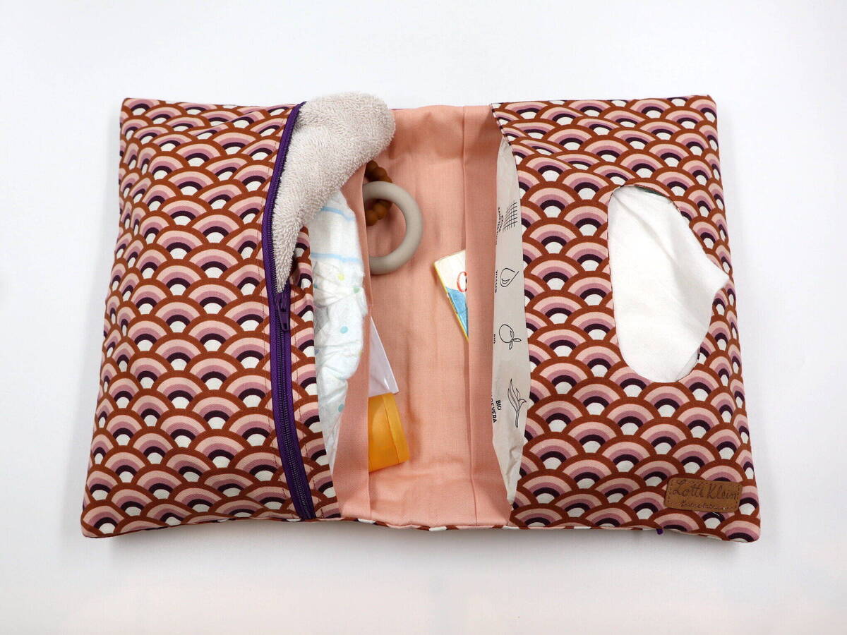 Sobald sich Nachwuchs ankündigt, stellt sich die Frage der notwendigen Erstausstattung. Die Windeltasche von LottiKlein ist die perfekte Alternative zu großen sperrigen Wickeltaschen und dadurch das perfekte Geschenk zur Geburt oder zur Taufe. Die Tasche bietet Platz für Windeln, Feuchttücher, Nuckel, U-Heft, Wickelunterlagen, das Lieblingsspielzeug des Babys und vieles mehr. Außerdem kannst Du die Wickeltasche blitzschnell mit dem angebrachten Gummiband verschließen. Du kannst die Windeltasche nach Belieben individualisieren lassen. Hierzu wird der Name des Kindes mit Holzwürfeln auf das Verschlussband gezogen.