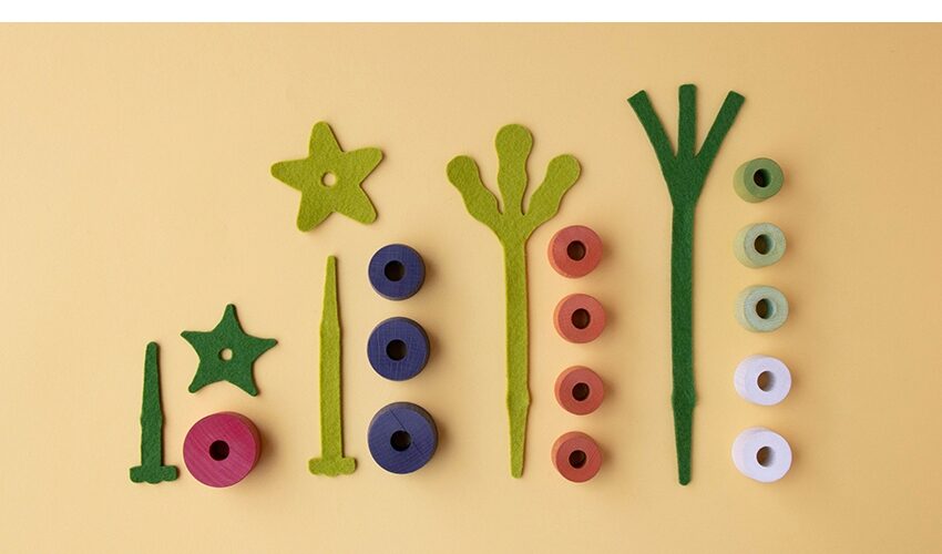 Das Buchenholz stammt aus der Region und ist mit Farben auf Wasserbasis gefärbt. Der Filz besteht aus 100 % natürlicher Wolle. Das Set wird in einem schönen, recycelten Karton geliefert, damit du es immer ordentlich und griffbereit hast!